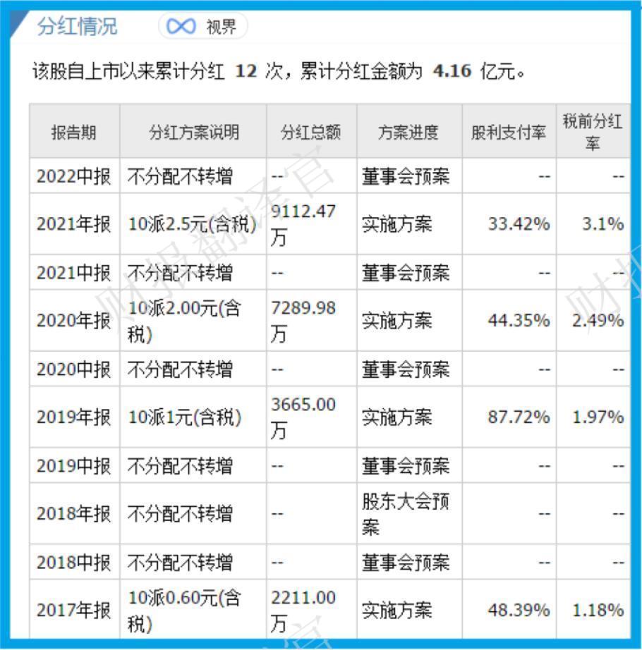 而从董秘的口中翻译官还得知,这家企业自上市以来累计分红12次,总共派发现金4.16亿元。