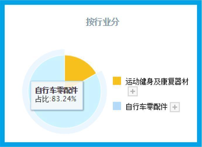 公司自行车零配件的收入占比为83.24%,运动健身及康复器材的收入占比为16.76%。