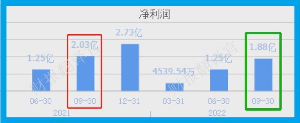 2021年第三季度,该企业的净利润为2.03亿元。到了2022年第三季度,这家公司的净利润就降至1.88亿元,同比下降了7%。
