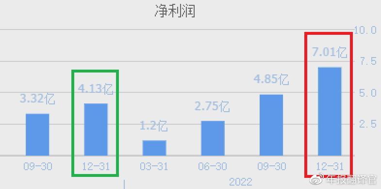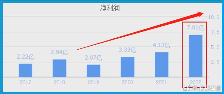 2021年第四季度,这家企业的净利润只有4.13亿元。到了2022年第四季度,该公司的净利润就达到了7.01亿元,同比增长了70%。
