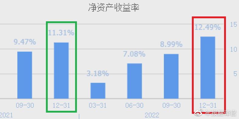 2022年第四季度,这家企业的净资产收益率为12.49%,同比增长了10%。这说明只要公司使用股东的100元钱,通过汽车零部件的生产经营,9个月后就能赚回12.49元的净利润。