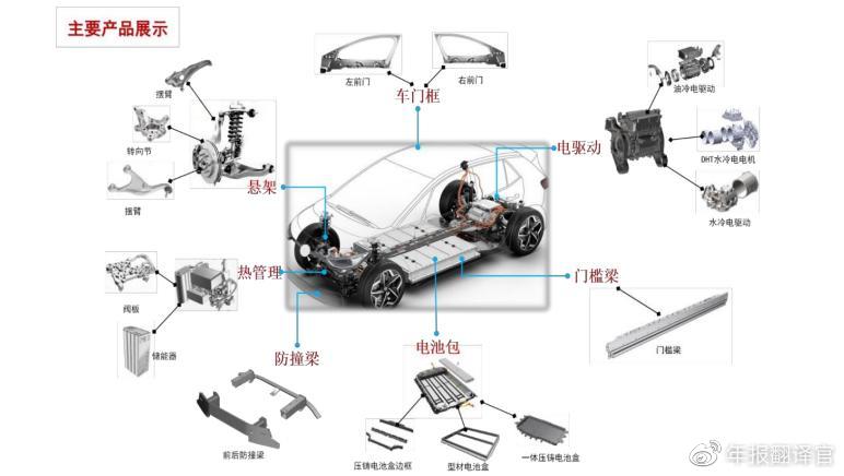 这是一家我国新能源汽车轻量化领域中的龙头企业,公司的主要产品为汽车用铝合金零部件。