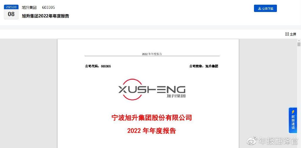 大家好我是财报翻译官,今天将调研A股新能源车概念板块中,旭升集团(股票代码:603305)这家上市公司2022年第四季度财报,下面进入今天的主题。