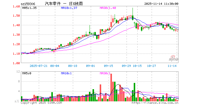 汽车零件ETF(159306)业绩比较基准为中证汽车零部件主题指数收益率,管理人为平安基金管理有限公司,基金经理为钱晶、马浩然,成立(2024-04-29)以来回报为35.04%,近一个月回报为-4.67%。