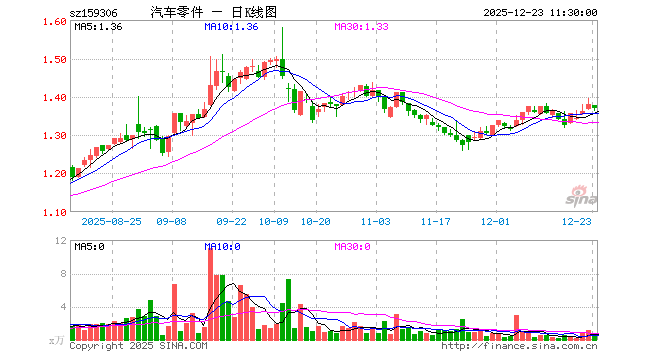 12月23日,截止午间收盘,汽车零件ETF(159306)跌0.80%,报1.370元,成交额62.06万元。汽车零件ETF(159306)重仓股方面,汇川技术截止午盘涨0.48%,福耀玻璃跌0.35%,三花智控跌0.62%,拓普集团跌0.91%,德赛西威跌0.81%,长盈精密跌2.57%,赛轮轮胎跌2.32%,银轮股份涨1.49%,双环传动跌0.71%,华域汽车跌0.30%。