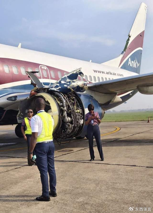据航空公司和尼日利亚安全调查委员会透露,机组人员在发现发动机故障后,迅速启动应急预案,决定放弃飞往哈科特港的计划,选择在邻近的贝宁进行紧急迫降。在单引擎飞行的情况下,机组人员凭借丰富经验和专业操作,最终让飞机成功安全降落在贝宁的机场,落地后,救援人员和地勤人员迅速到位,对飞机进行检查和处置,所幸机上所有人员均未受伤,但飞机本身遭受了重大损伤,左侧发动机几乎完全报废,外壳撕裂、内部管线外露,景象触目惊心。